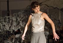 U prvom trenutku čini se da je riječ o odnosu zvuka i tijela, tjelesnoj reakciji mekog, fluidnog pokreta Vladimire Šančić na živu sveprožimajuću glazbu. Ubrzo se uključuje i Nevenka Miklenić: ulazi u svjetlo scene i onda polako – unoseći, rastežući, oblikujući i raspoređujući svoje mreže i žice, preuzima izvedbeni prostor transformirajući ga u izložbeni ...pročitajte cijeli tekst...