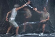 Koreografija se razvija nepredvidivo, uvijek u nekom novom ključu tempa i kvalitete pokreta, reakcije i razvoja usvojenog impulsa, geste, njihaja, ispada, vrtnje kroz individualno istraživanje potencijalne realizacije. Tjelesne interpretacije zadataka postavljene su apstraktno no povremeno prokomuniciraju na dubljoj razini i iznenade autentičnom prisnošću ...pročitajte cijeli tekst...