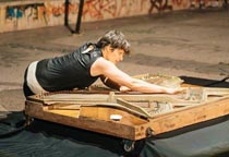 Dubokom gotovo enigmatskom koncentracijom, s puno duhovitosti, ironije i imaginacije, autorica razvija tjelesne i izvedbene ideje, modulirajući i metamorfirajući apsorbirano iskustvo. Tjelesnost postaje animalna i taktilna, a provlače se začudni, ali prepoznatljivi motivi. Fizička izvedba tek je jedna razina predstave te je stalno udvojena poetskim recitativima, inkantacijama i songovima ...pročitajte cijeli tekst...