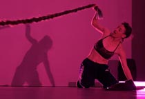 Danijela Zajc promišlja o tjelesnom vokabularu izvan okvira naučenog. Njezino vladanje tijelom na užetu doista zaokuplja i gleda se netremice. Brze izmjene tjelesnih kretnji na užetu, spontani okreti, pad prema tlu, hrabra igra tijela i užeta donosi koreografsku dinamiku, koja čini da se val užeta pretvara u zvučni val različitih frekvencija i amplituda ...pročitajte cijeli tekst...